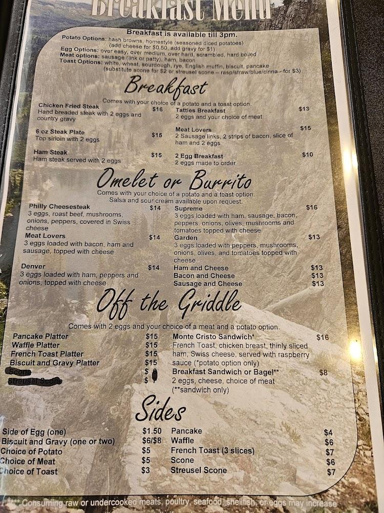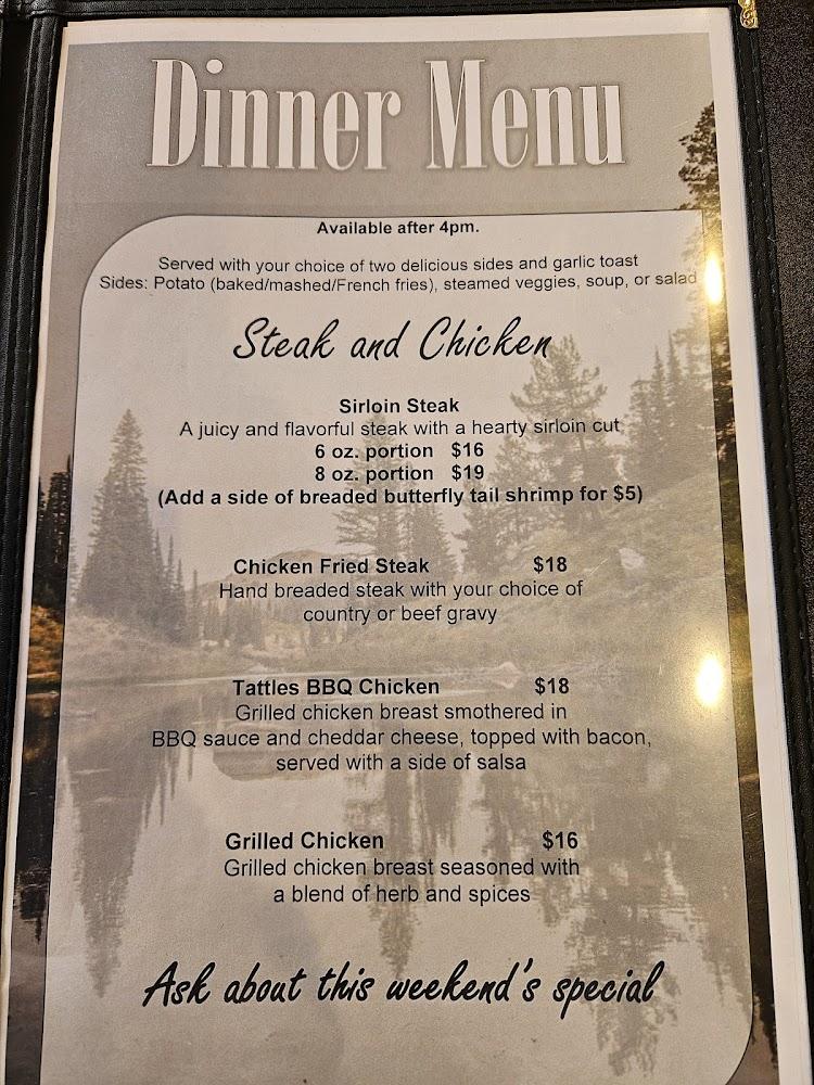 Tattles Bar & Grill presents a diverse menu catering to breakfast, lunch, and dinner. Guests delight in traditional favorites and regional specialties, like the chicken fried steak. The breakfast selections, including omelets and burritos, start the day off right.